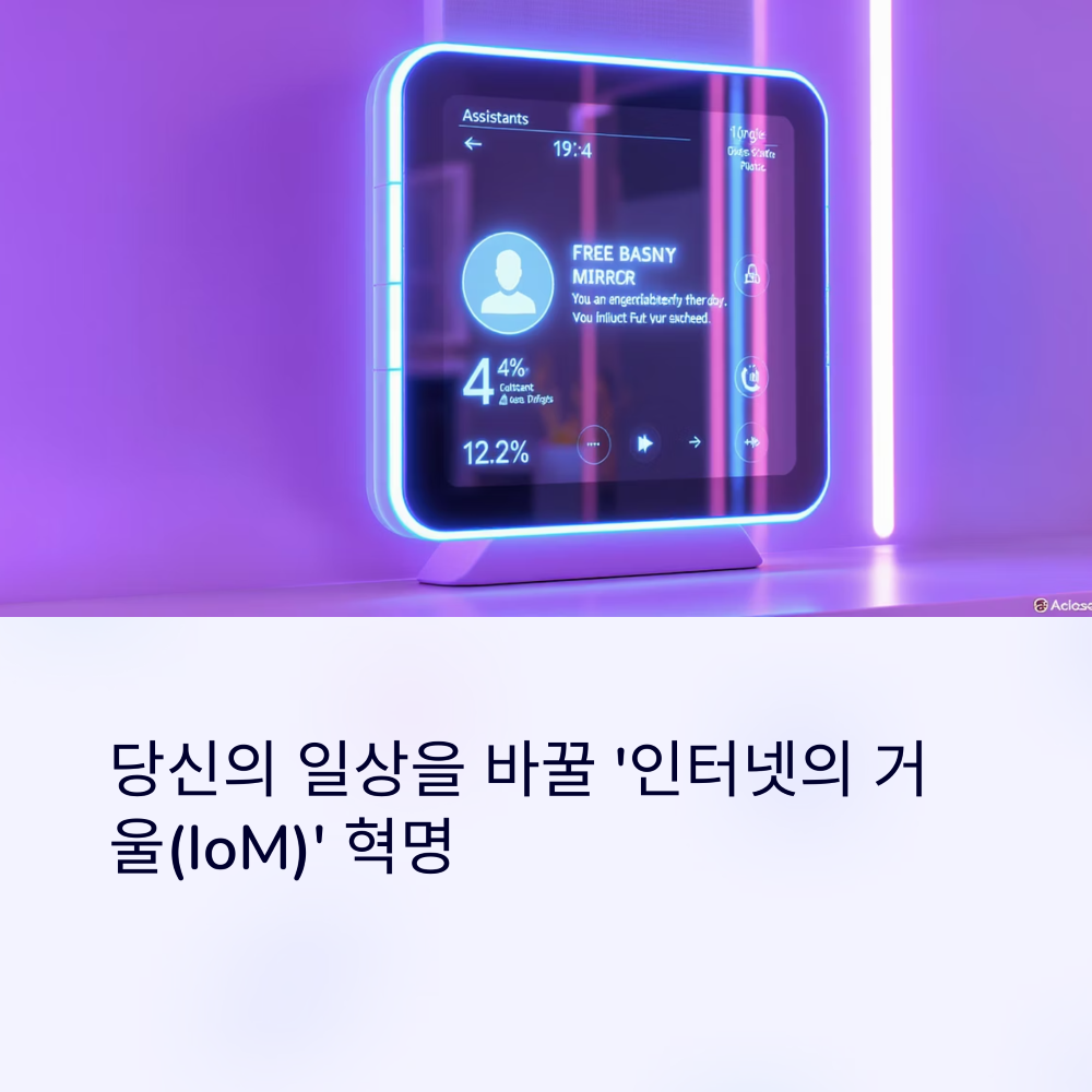 IoM(Internet of Mirrors)은 사물인터넷(IoT)과 XR(확장현실), AI(인공지능)가 결합된 기술로, 스마트 미러를 중심으로 한 ‘거울 기반의 실시간 인터페이스’를 의미합니다. 기존의 단순한 거울 기능을 넘어, 사용자의 얼굴 표정, 피부 상태, 체형 등을 실시간으로 분석하여 정보를 제공하거나 맞춤형 콘텐츠를 보여주는 것이 핵심입니다. 스마트 홈, 퍼스널 헬스케어, 뷰티 시장에서 이 IoM이 빠르게 확산되고 있는 이유는, 거울이라는 가장 일상적인 물건을 ‘개인화된 디지털 창’으로 바꾸기 때문입니다.