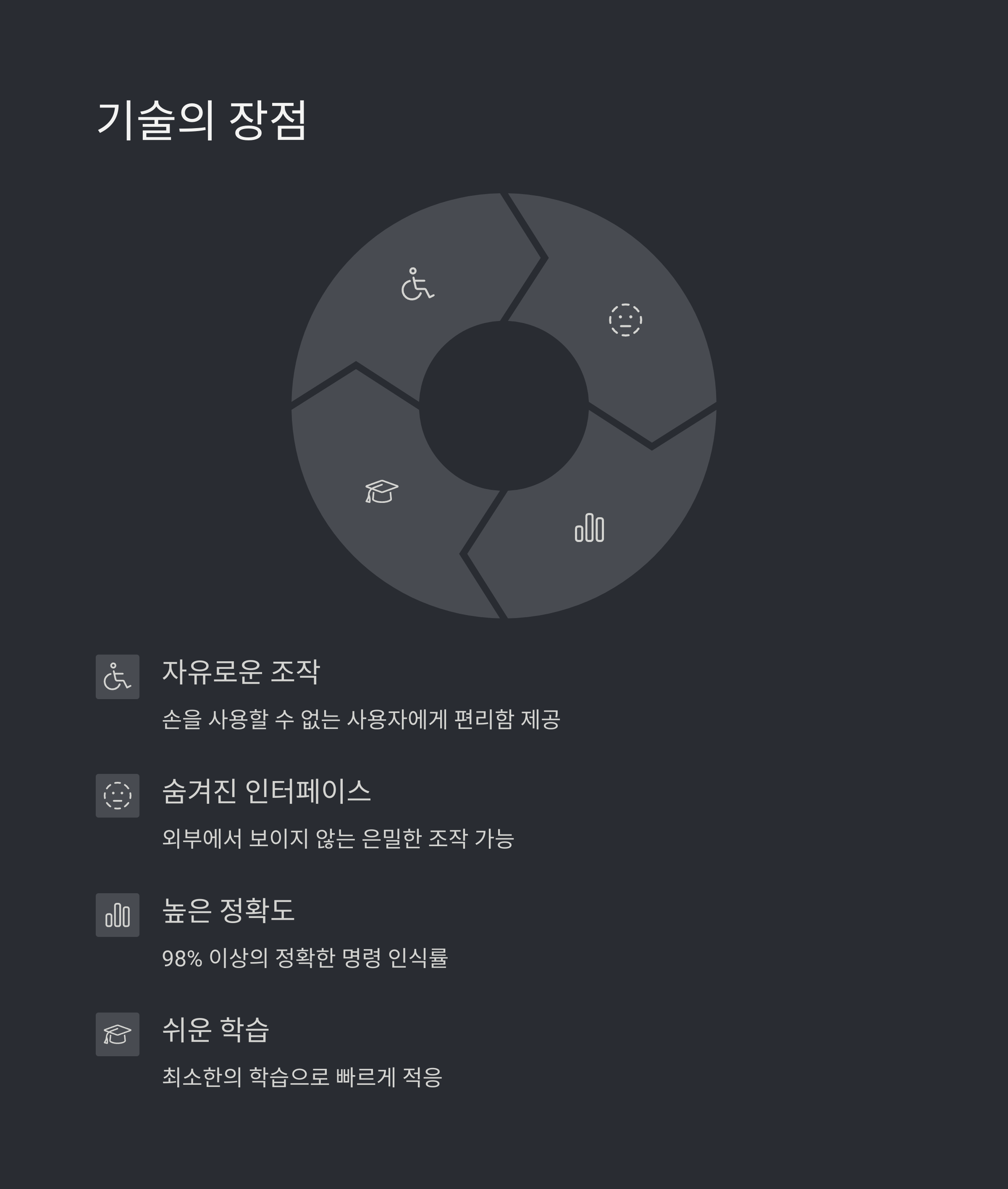 이 기술은 손이나 팔의 움직임이 제한된 사용자분들께 새로운 가능성을 제공하며, 접근성과 사용자 경험 측면에서 매우 혁신적인 전환점을 보여주고 있습니다.