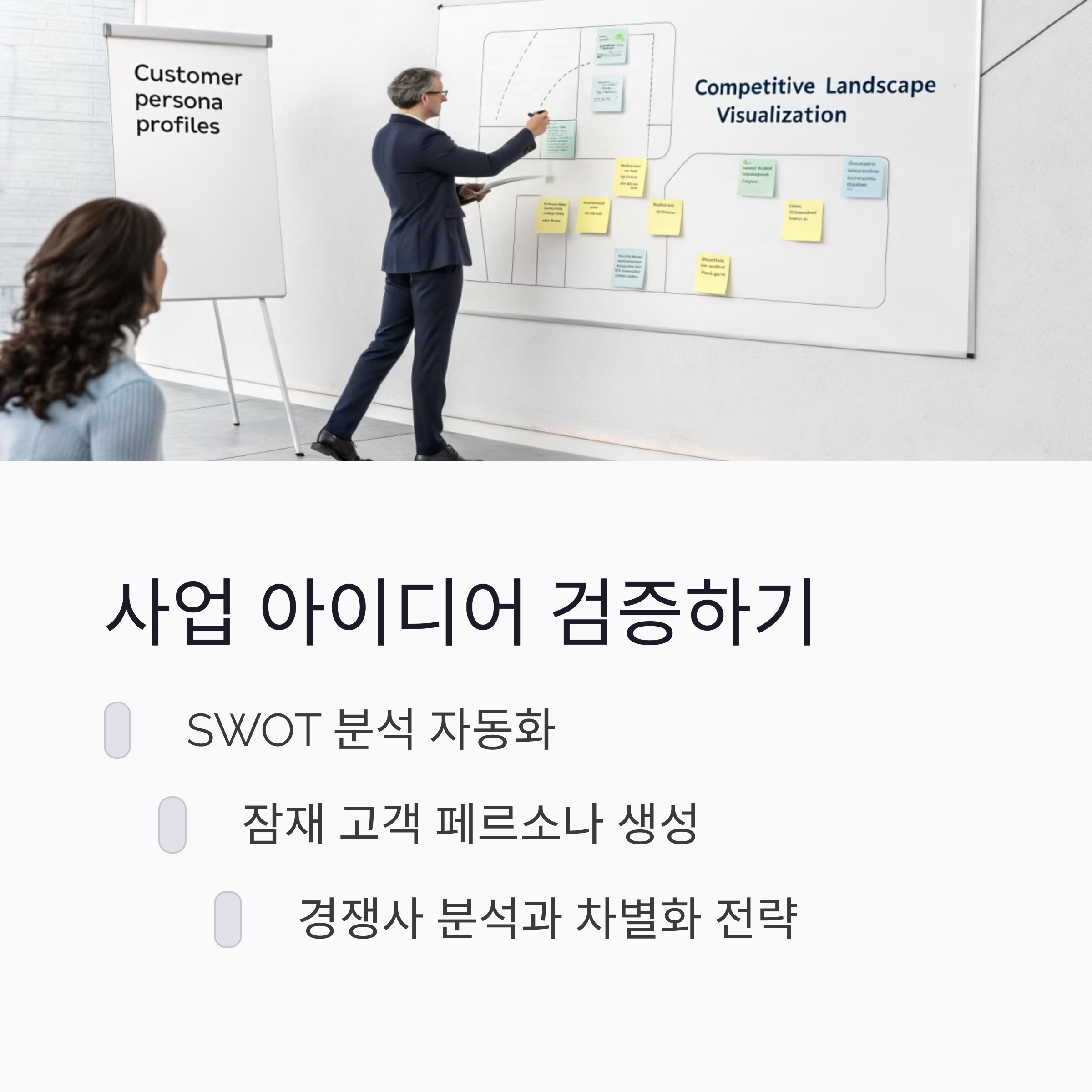 - ✅ **아이디어 검증** - 떠오른 아이디어가 성공할 가능성이 높은지 AI에게 분석해 보라고 요청할 수 있어요.